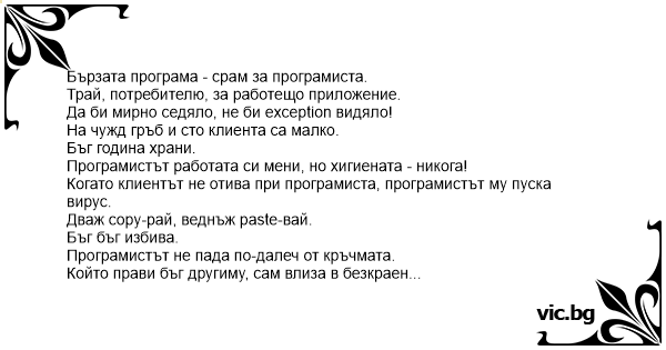 Който прави бъг другиму, сам влиза в безкраен цикъл.