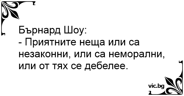 - Приятните неща или са незаконни, или са неморални, или от тях се дебелее.