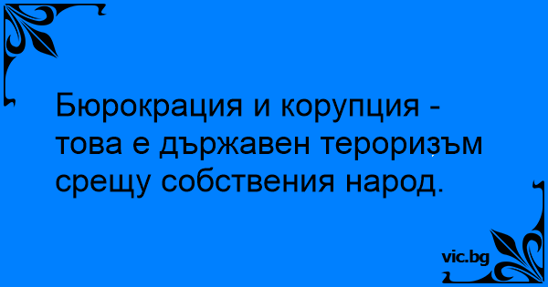 Бюрокрация и корупция - това е държавен тероризъм срещу собствения народ.
