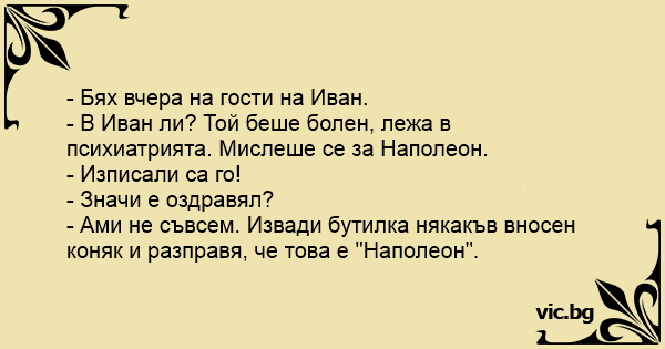 - В Иван ли? Той беше болен, лежа в психиатрията. Мислеше се за Наполеон.