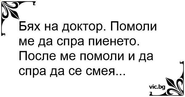 Бях на доктор. Помоли ме да спра пиенето. После ме помоли и да спра да се смея...