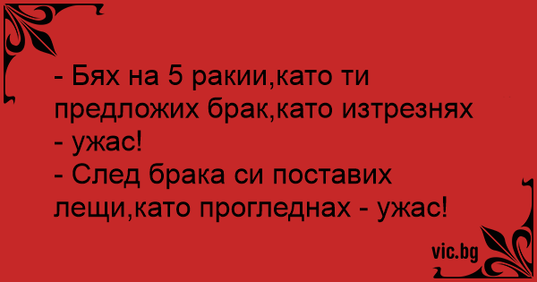 - Бях на 5 ракии,като ти предложих брак,като изтрезнях - ужас!