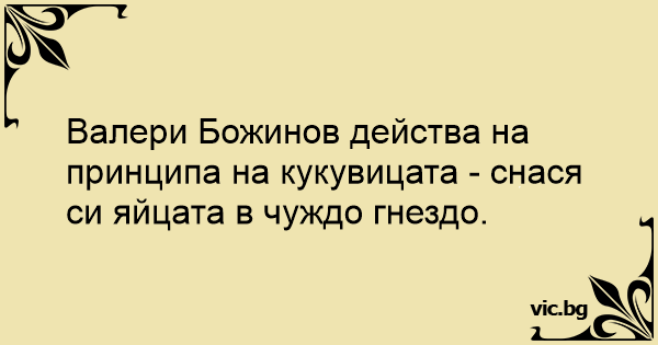 Валери Божинов действа на принципа на кукувицата - снася си яйцата в чуждо гнездо.