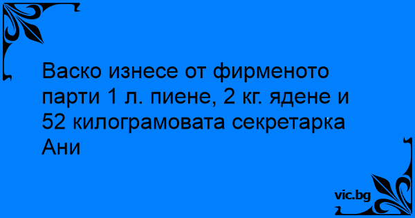 Васко изнесе от фирменото парти 1 л. пиене, 2 кг. ядене и 52 килограмовата секретарка Ани