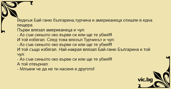 Веднъж Бай ганю българина,турчина и американеца отишли в една пещера.