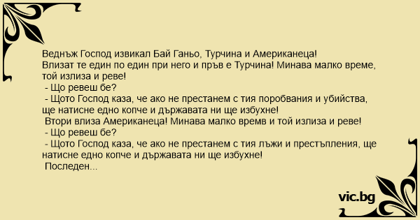 Веднъж Господ извикал Бай Ганьо, Турчина и Американеца!