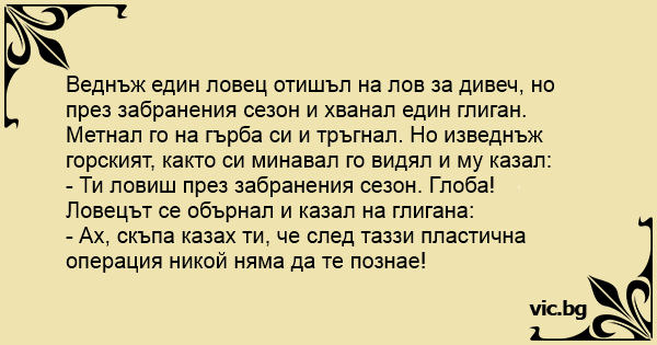 • Вицове от Facebook от нашата страница https://www.facebook.com/www.vic.bg