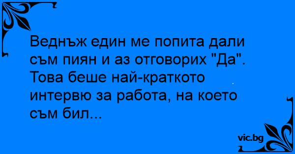 Веднъж един ме попита дали съм пиян и аз отговорих "Да".