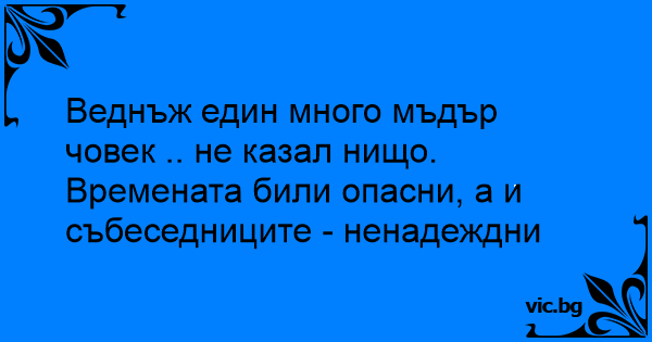 Веднъж един много мъдър човек .. не казал нищо. Времената били опасни, а и събеседниците - ненадеждни