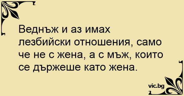 Веднъж и аз имах лезбийски отношения, само че не с жена, а с мъж, които се държеше като жена.