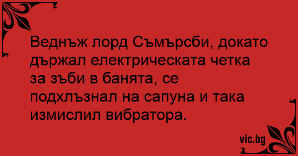 Веднъж лорд Съмърсби, докато държал електрическата четка за зъби в банята, се подхлъзнал на сапуна и така измислил вибратора.