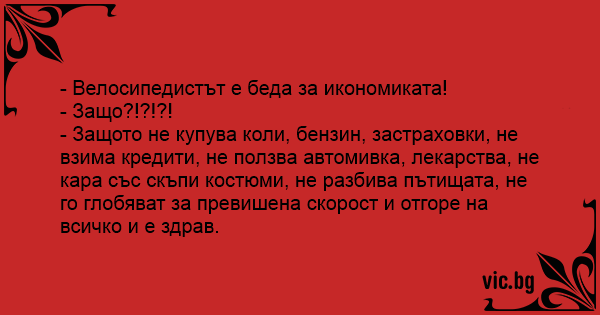 - Велосипедистът е беда за икономиката!