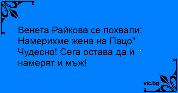 Венета Райкова се похвали: Намерихме жена на Пацо" Чудесно! Сега остава да й намерят и мъж!