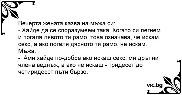 - Ами хайде по-добре ако искаш cekc, ми дръпни члeнa веднъж, а ако не искаш - тридесет до четиридесет пъти бързо.