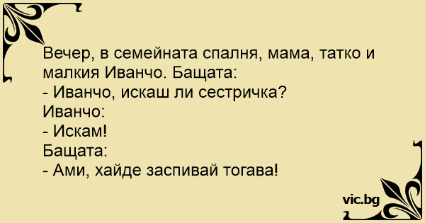 • Вицове от Facebook от нашата страница https://www.facebook.com/www.vic.bg