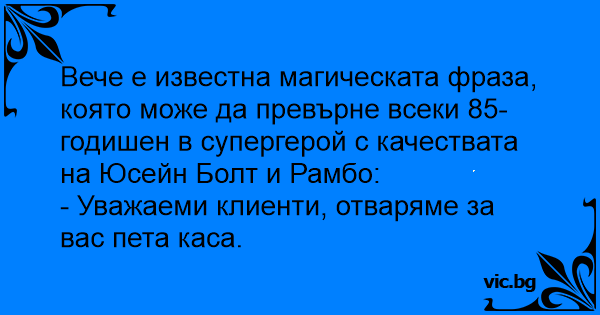 Вече е известна магическата фраза, която може да превърне всеки 85-годишен в супергерой с качествата на Юсейн Болт и Рамбо: