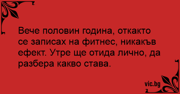 Вече половин година, откакто се записах на фитнес, никакъв ефект. Утре ще отида лично, да разбера какво става.
