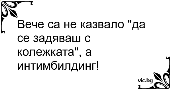 Вече са не казвало "да се задяваш с колежката", a интимбилдинг!