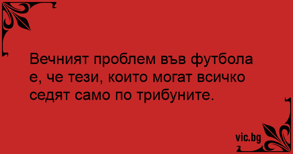 Вечният проблем във футбола е, че тези, които могат всичко седят само по трибуните.