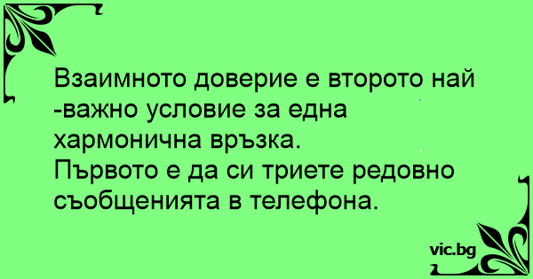Взаимното доверие е второто най-важно условие за една хармонична връзка.