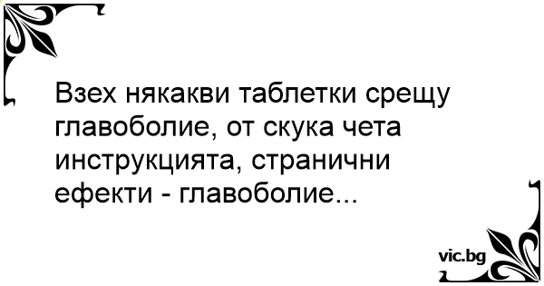Взех някакви таблетки срещу главоболие, от скука чета инструкцията, странични ефекти - главоболие...