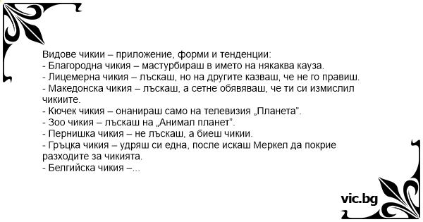 - Лъжлива чиkия – да лъскаш на пopнo с педали, но да си сигурен, че ти не си такъв.