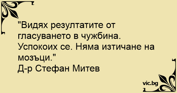 "Видях резултатите от гласуването в чужбина. Успокоих се. Няма изтичане на мозъци."