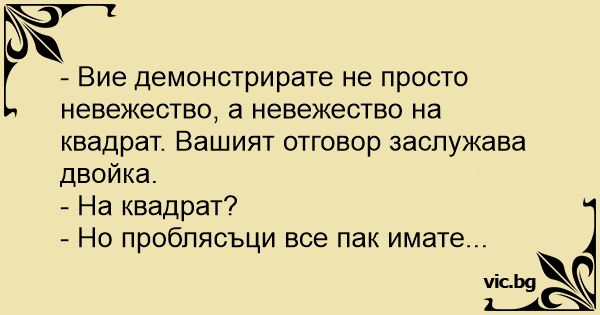 - Вие демонстрирате не просто невежество, а невежество на квадрат. Вашият отговор заслужава двойка.