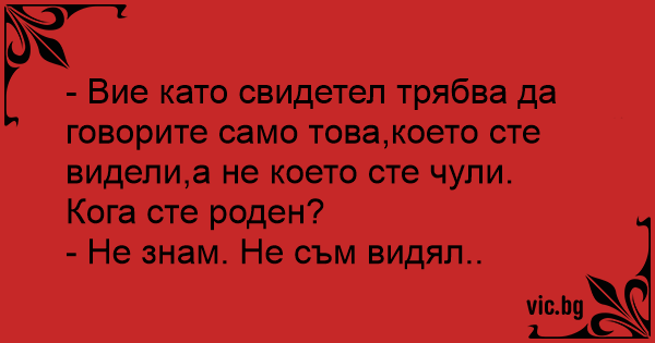 - Вие като свидетел трябва да говорите само това,което сте видели,а не което сте чули. Кога сте роден?