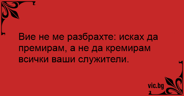 Вие не ме разбрахте: исках да премирам, а не да кремирам всички ваши служители.