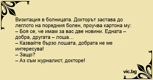 – Боя се, че имам за вас две новини. Едната – добра, другата – лоша…