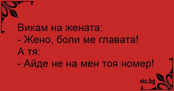 - Жено, боли ме главата!