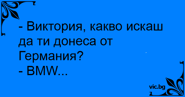 - Виктория, какво искаш да ти донеса от Германия?
