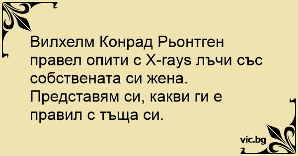 Вилхелм Конрад Рьонтген правел опити с X-rays лъчи със собствената си жена.