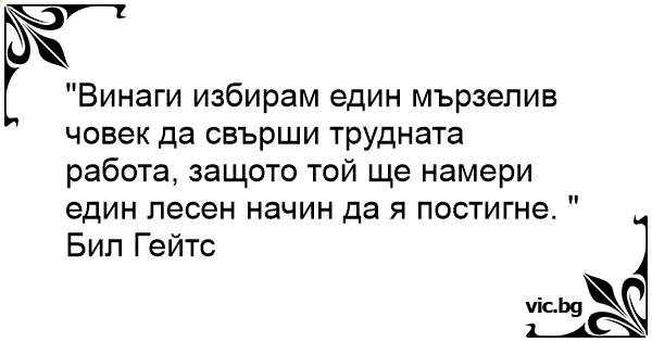 «Я всегда выберу ленивого человека делать трудную работу, потому что он найдёт лёгкий путь её выполнения». Билл Гейтс