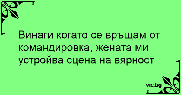 Винаги когато се връщам от командировка, жената ми устройва сцена на вярност