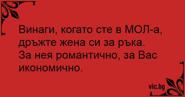 Винаги, когато сте в МОЛ-а, дръжте жена си за ръка.