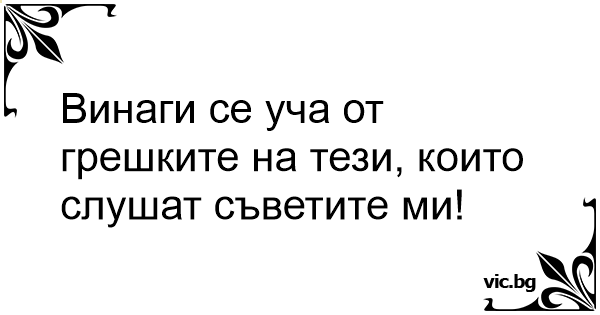 Винаги се уча от грешките на тези, които слушат съветите ми!