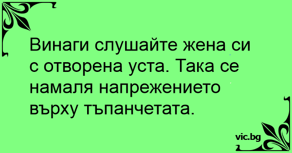 Винаги слушайте жена си с отворена уста. Така се намаля напрежението върху тъпанчетата.