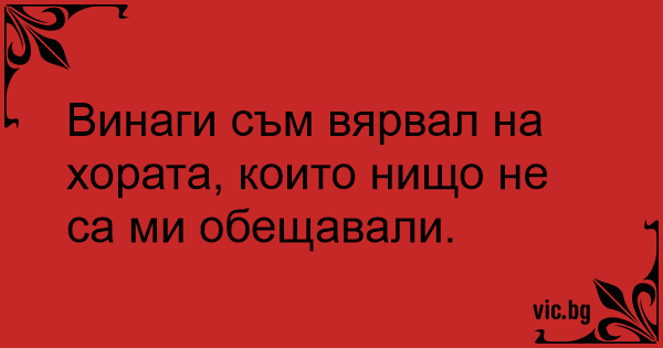 Винаги съм вярвал на хората, които нищо не са ми обещавали.