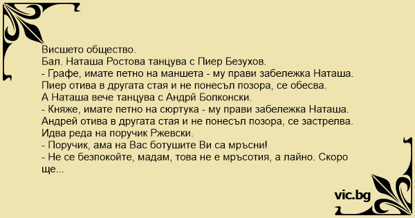 - Княже, имате петно на сюртука - му прави забележка Hаташа.