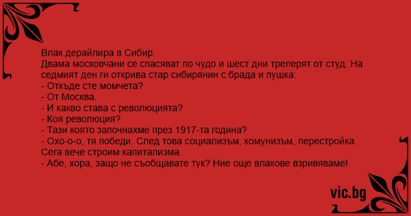 - Охо-о-о, тя победи. След това социализъм, комунизъм, перестройка. Сега вече строим капитализма.