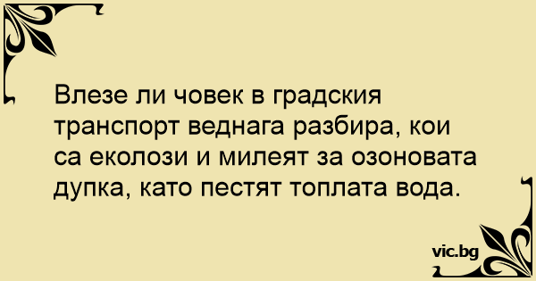Влезе ли човек в градския транспорт веднага разбира, кои са еколози и милеят за озоновата дупка, като пестят топлата вода.