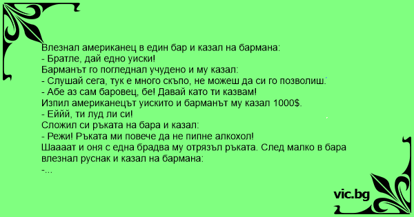 Българинът гледал, гледал, извадил си хуя и го сложил на бара.