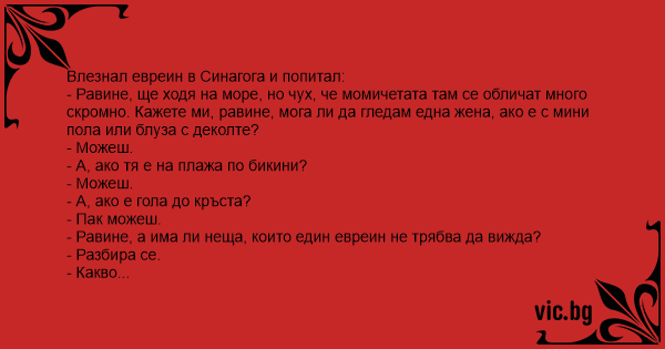 Влезнал евреин в Синагога и попитал: