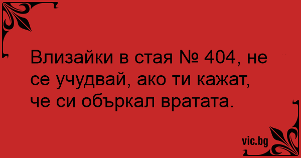 Влизайки в стая № 404, не се учудвай, ако ти кажат, че си объркал вратата.