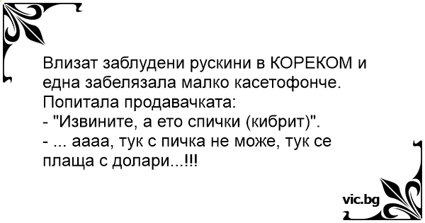 - ... аааа, тук с пичka не може, тук се плаща с долари...!!!
