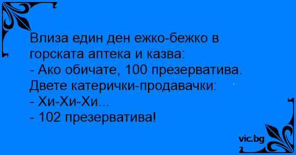 • Вицове от Facebook от нашата страница https://www.facebook.com/www.vic.bg