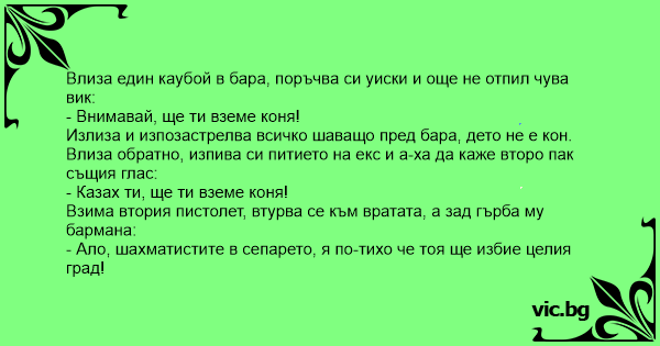 Влиза един каубой в бара,...