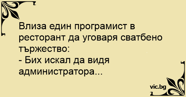 Влиза един програмист в ресторант да уговаря сватбено тържество: